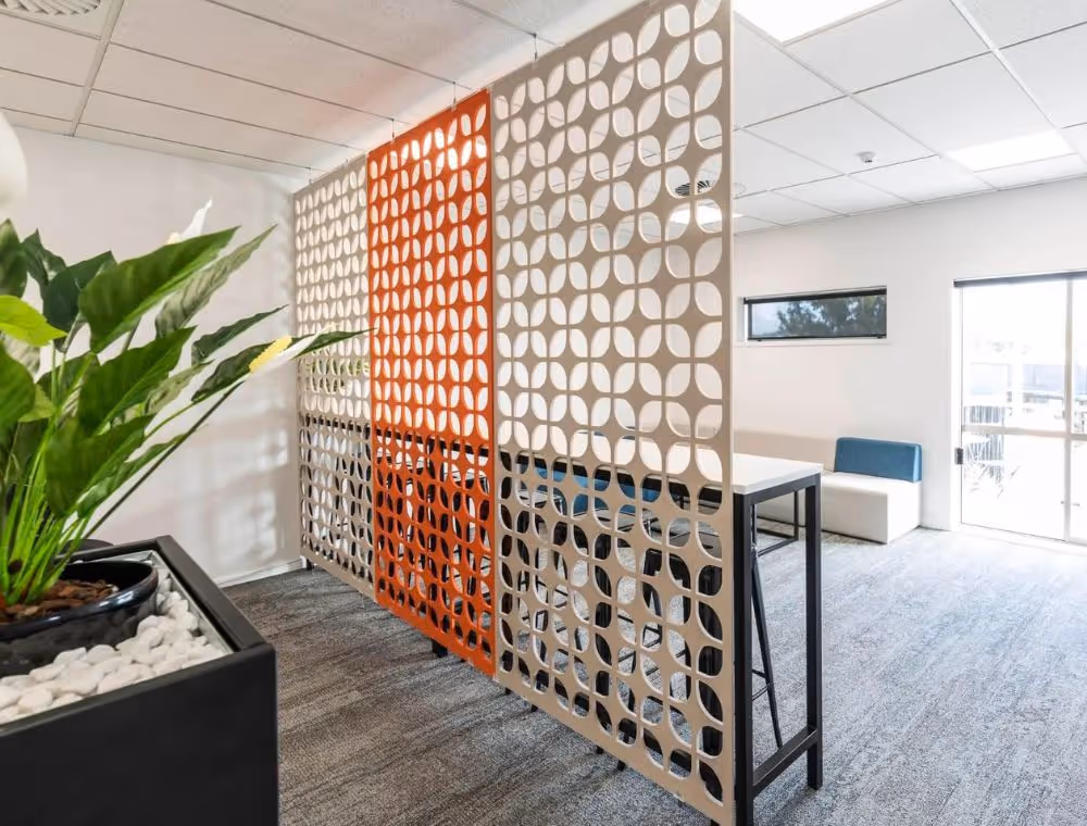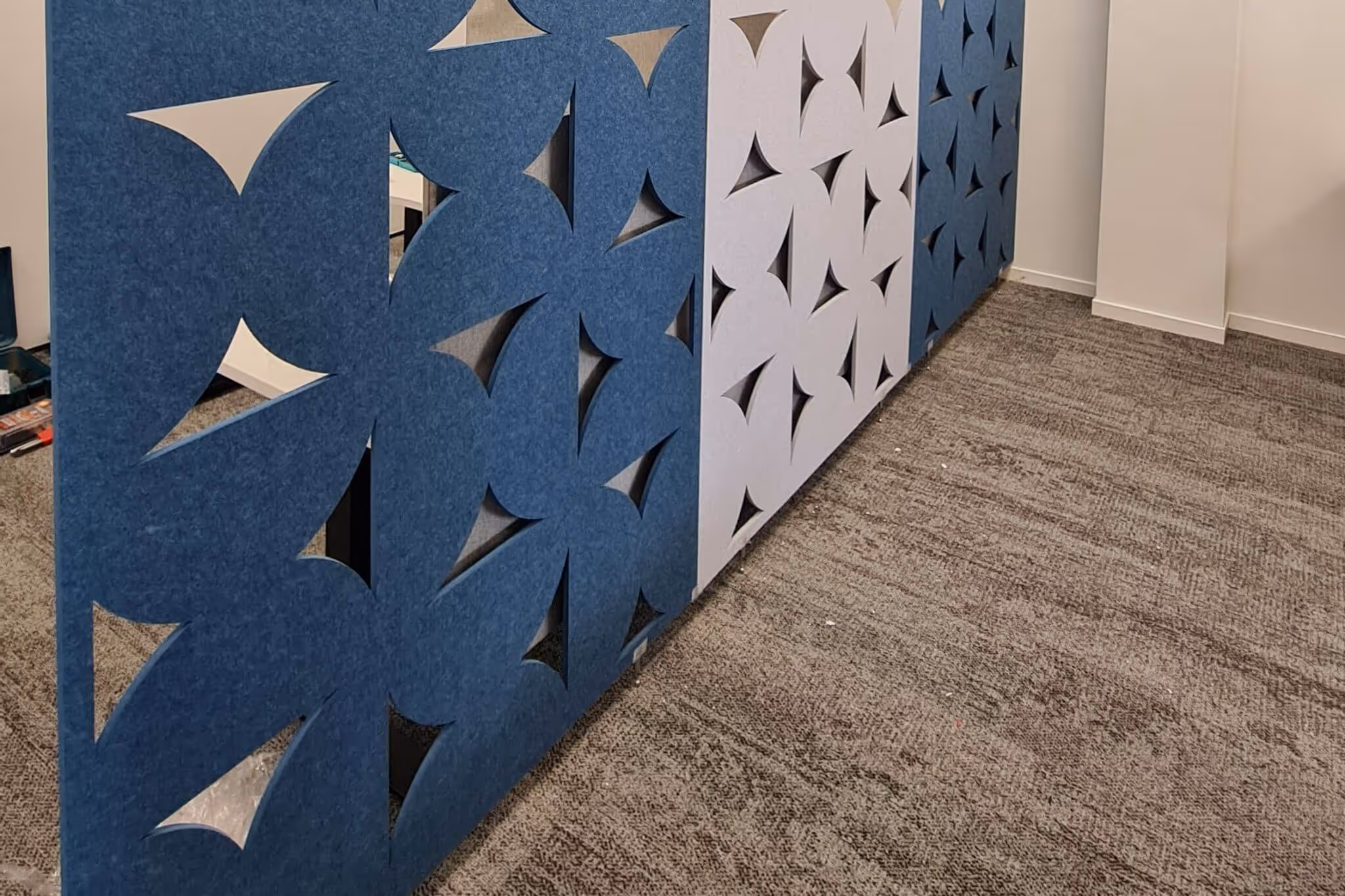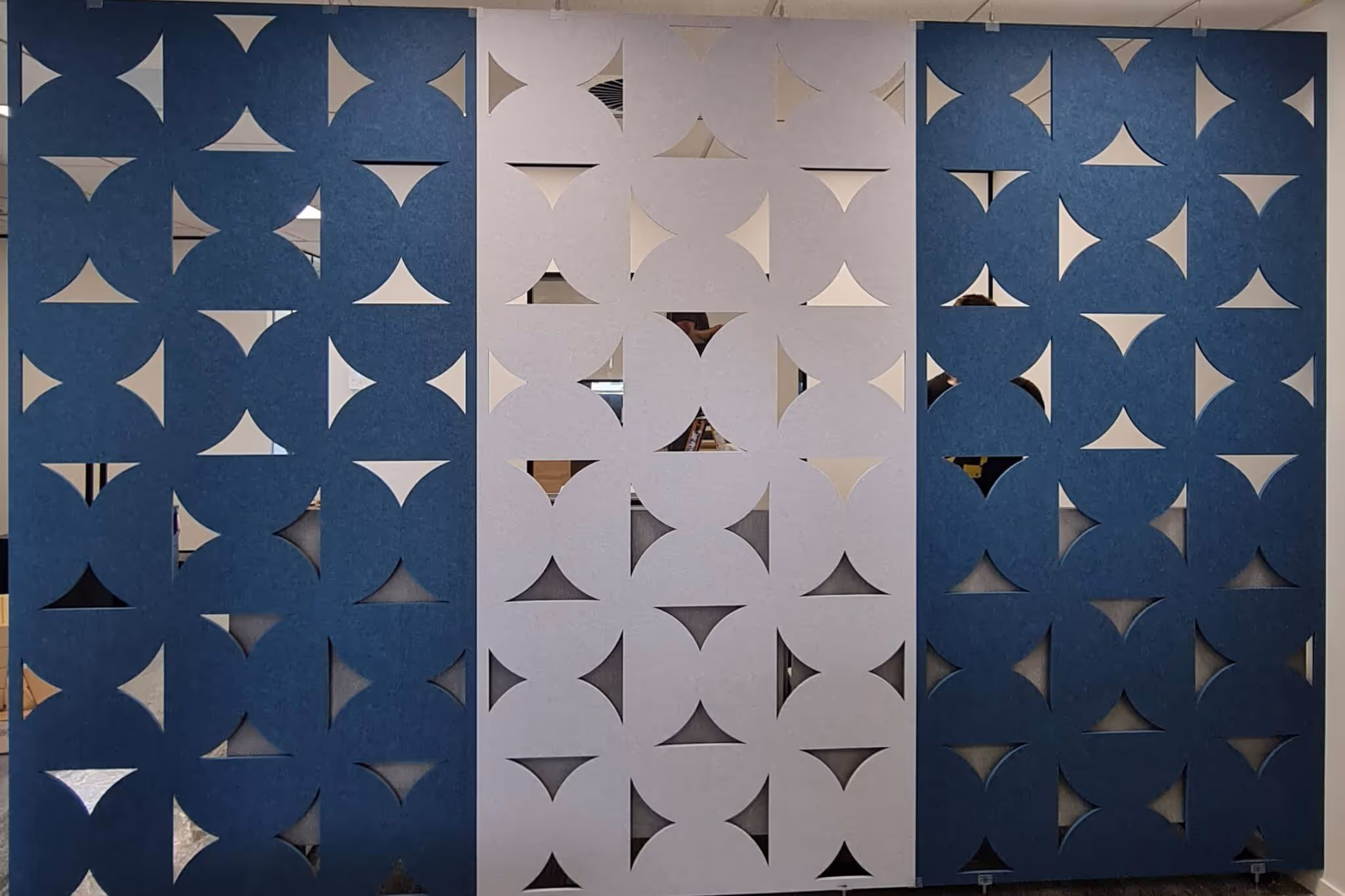 The acoustic hanging wall adds both an aesthetic and functional element to your workplace. With a range of colours and custom designs available the acoustic hanging wall allows you to add a splash of colour to your workplace, while creating a division between areas and dampen the acoustics.
