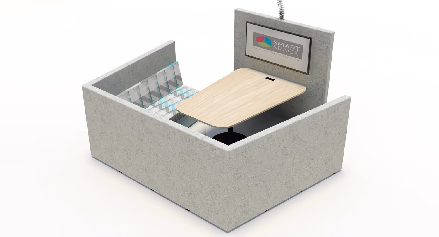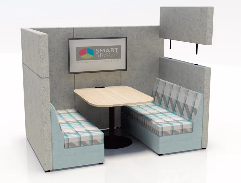 Your only obstacle will be finding the will to leave the uber comfortable, ergonomically designed soft seating. This booth is also a softy when it comes to sustainability – recycled materials have been used where possible – the only major environmental impact will be the positive impact it has on your work environment. Especially as it comes with both power and charging stations, as well as the option of adding an in-built LCD Screen.