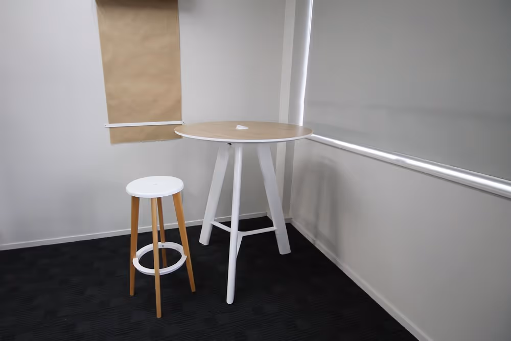 The scope bar leaner is a sit or stand collaboration table perfect for office common areas, agile workspaces and lunch rooms.