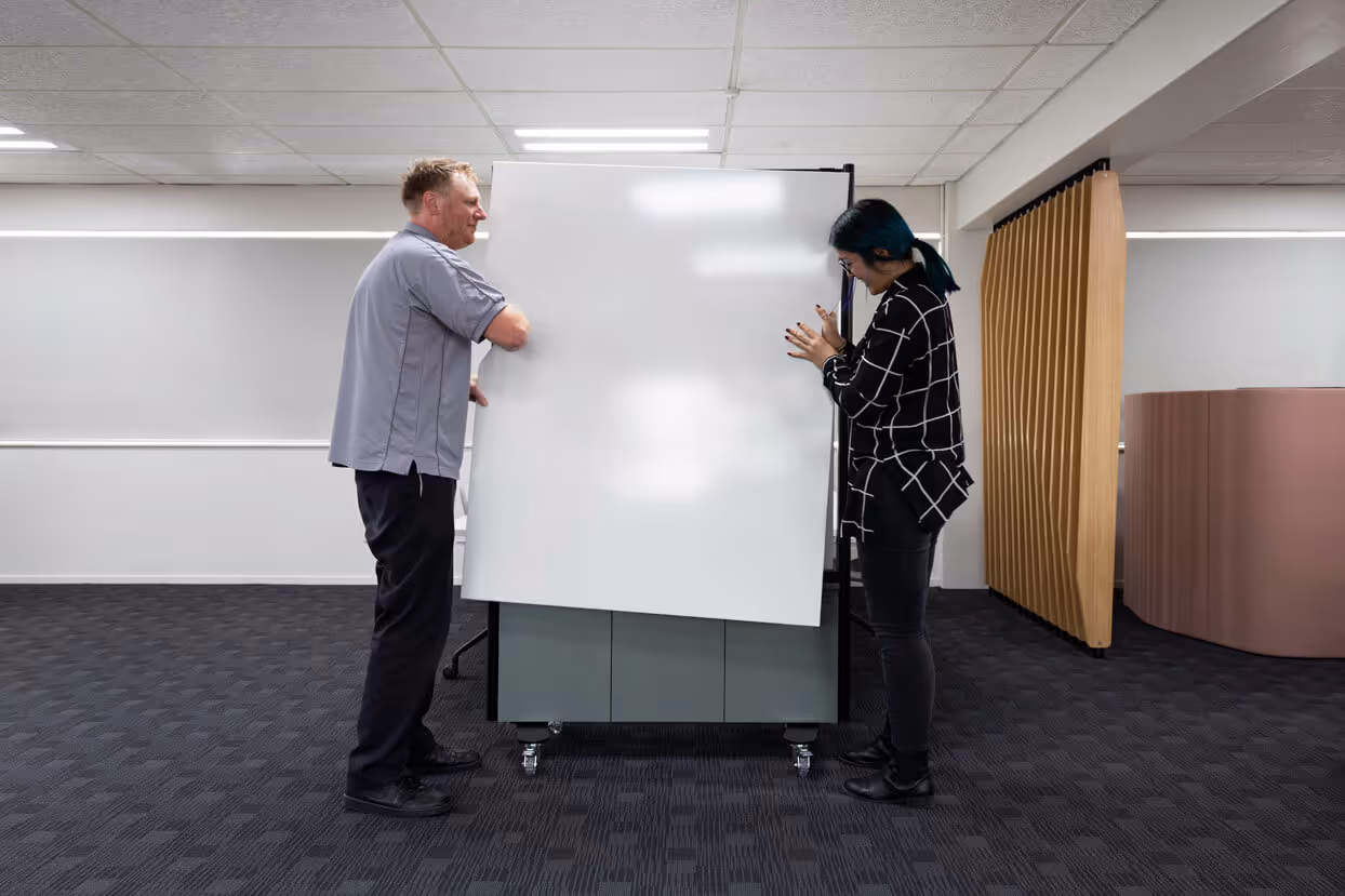 The scope mobile is a double-sided whiteboard on 4 wheels. It is designed and manufactured in NZ and comes in a range of finishes.
