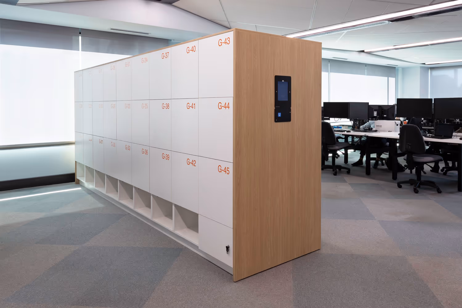 Smartalock is the latest technology in staff storage solutions. Companies can have assigned lockers, or unassigned lockers - or even a mixture of both. Staff can manage their lockers and book unassigned lockers in any place remotely, and management can monitor and unlock lockers if needed. The lock is easily accessed with your choice of building access card, smartphone app, or the touch-screen kiosk. It’s low power, low maintenance, and pretty good looking, too. And just for gadgets-sake, you can even charge your smart device in it.